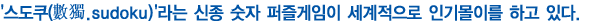 "¼öÇÐ ÆÛÁñ°ÔÀÓÀ» ¿ø¿ëÇØ ¸¸µç '½ºµµÄí'°¡ ´Ü¼øÇÏÁö¸¸ Àç¹ÌÀÖ°í Áßµ¶¼ºµµ ÀÖ¾î Àü ¼¼°è·Î ºü¸£°Ô ÆÛÁ®³ª°¡°í ÀÖ´Ù"°í