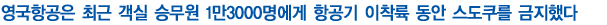 ¿µ±¹Ç×°øÀº ÃÖ±Ù °´½Ç ½Â¹«¿ø 1¸¸3000¸í¿¡°Ô Ç×°ø±â ÀÌÂø·ú µ¿¾È ½ºµµÄí¸¦ ±ÝÁöÇß´Ù. ½Â¹«¿øµéÀÌ ÆÛÁñ¿¡ ºüÁ® ÀÖÀ¸¸é